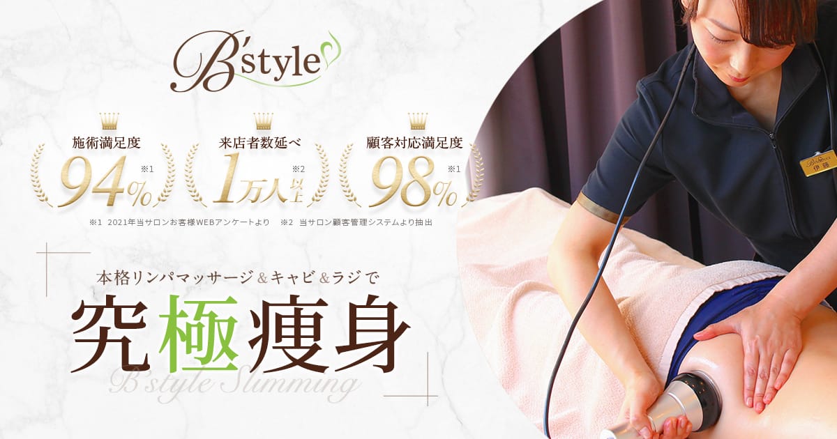 B'style 各務原店月~金 10:30~20:00 (最終受付 18:00) / 土日祝 10:00~19:00 (最終受付 17:00)創業19年のオールハンド痩身を軸に、茶色基調の落ち着いた全室個室で丁寧なリンパケアと結果重視のサポートを提供します。シャワー・パウダースペース完備で遠方からも通いやすく、体質改善まで寄り添う施術が特長です。料金(税込) -詳細を見る公式サイトを見る
