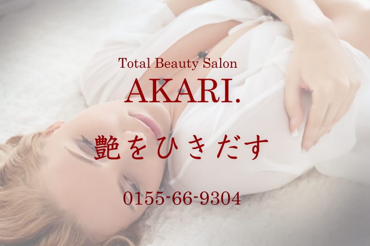 AKARI.10:00~19:00 (月曜日定休)帯広のトータルビューティサロンAKARI.は、オールハンドの独自エステ『ルシーダ』を提供。丁寧なカウンセリングと長年のメイク実績で個々の肌質やラインに合わせた施術を行い、顔・背中・脚の悩みに手技でアプローチします。料金(税込)12,000円〜詳細を見る公式サイトを見るプラン1回あたり(税込)総額(税込)回数期間回数券ルシーダバックケア¥12,000/回¥12,0001回-他2件のプランを見る