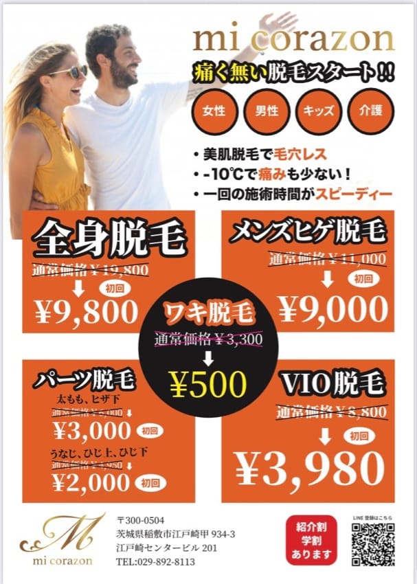 beauty salon micorazon10:00~19:00(最終受付)看護師経験を持つ施術者が運営する茨城県南の個人サロン。トラブル肌専門のフェイシャルに加え、ハイフ導入のフェイシャルやハイパーナイフ痩身、筋膜リリースで部分痩身や体質改善を目指せます。料金(税込)1,100円〜詳細を見る公式サイトを見るプラン1回あたり(税込)総額(税込)回数期間回数券耳ツボジュエリー(1セット・2粒)¥1,100/回¥1,1001回-他6件のプランを見る