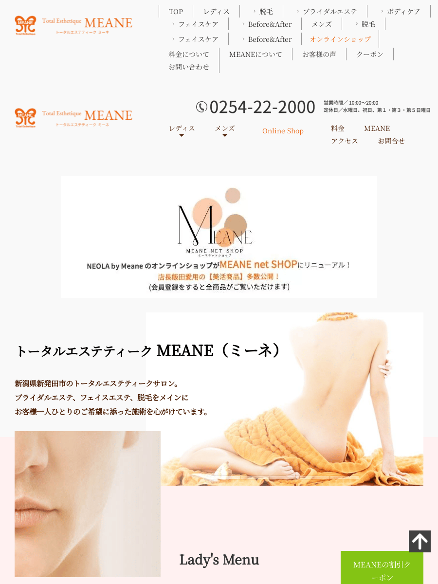 MEANE10:00~20:00新発田市のトータルエステサロン。ブライダルやフェイスと組み合わせたスリミングコースやラジオ波・セルライト除去を揃え、希望に合わせたオーダーメイドのコース設定で挙式前や部分的なサイズダウンに強みがあります。料金(税込)3,850円〜詳細を見る公式サイトを見るプラン1回あたり(税込)総額(税込)回数期間回数券スリミングフェイシャル¥3,850/回¥3,8501回-他9件のプランを見る