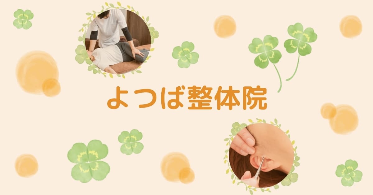 よつば整体院八日市駅から徒歩12分平日 09:30~19:30/土曜 09:30~12:00全国の耳つぼダイエット施術者に指導する実績を持つ夫婦運営の整体院。個別の耳つぼダイエットと栄養・生活習慣指導で無理なく結果を出し、整体と組み合わせて痛みや運動制限も支援。キッズスペース完備。料金(税込) -詳細を見る公式サイトを見る
